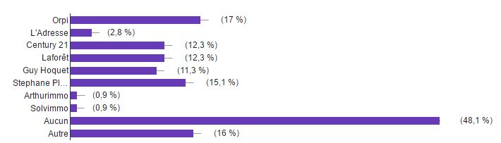 La quasi majorité des sondés (48%) trouvent qu’aucune enseigne ne leur inspire confiance. Un chiffre qui fait écho à la mauvaise image encore recensée de cette profession. Au-delà de ce premier résultat, c’est l’enseigne ORPI qui rassemble le plus de suffrages avec 17% de confiance en la marque, suivie du réseau tout jeune Stéphane Plaza Immobilier avec 15% puis Century 21 et Laforêt rassemblant 12% des suffrages.
